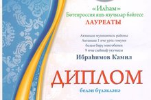 9 нчы сыйныф укучысы Ибраһимов Камил Алмаз улы Бөтенроссия "Илһам" яшь язучылар бәйгесендә катнашып, лауреат исеме яулады. Укытучысы - Галиева Ленара Рафаил кызы. Афәрин!