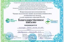Команда школы "ЭКОЗ" приняла участие в межрегиональной интеллектуальной игре "Аукцион экологических знаний" среди команд учащихся школ, посвященной Году экологии и особо охраняемых территорий РФ и РБ. Руководитель - учитель биологии Ханнанова Руфина Рифовна. Ребята награждены благодарственным письмом за участие. Молодцы! Поздравляем!