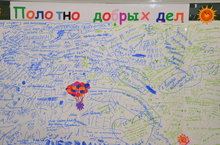 Вот и ученики нашей школы активно ведут благотворительную деятельность. На полотне добрых дел они записывали о своих добрых делах.
