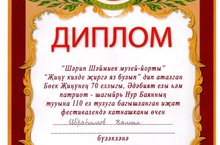 5 май көнне Әнәк авылында үткәрелгән "Шәрип Шәймиев музей-йорты" "Җиңү килде җиргә яз булып" дип аталган Бөек Җиңүнең 70 еллыга, Эдәбият елы һәм патриот шагыйрь Нур Баяннның тууына 110 ел тулуга багышланган иҗат фестивалендә 7А сыйныфы укучысы Ибраһимов Камил (җитәкчесе - татар теле һәм әдәбияте укытучысы Галиева Ленара Рафаэлевна) катнашты һәм дипломга лаек булды.