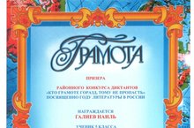 Учащиеся 5 класса Хисматуллин Булат (руководитель - Исмакаева Д.Ф.) и Галиев Наиль (руководитель - Нургалиева Л.М.) приняли участие в районном конкурсе диктантов "Кто грамоте горазд, тому не пропасть". Ребята успешно справились с заданием. Они стали призерами конкурса и награждены дипломами. Молодцы!