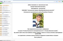 На основании плана МКУ "Управление образования" района, в целях активизации деятельности педагогического сообщества молодых учителей по освоению современных информационных технологий, поддержки творческих инициатив по созданию достоверных носителей информации об образовательной деятельности, повышения роли информатизации в совершенствовании образовательного процесса был проведен районный конкурс персональных сайтов молодых специалистов "Лучший персональный сайт". В конкурсе участвовали учителя из 12 школ. Учитель ОБЖ Хазиев Равиль Фагитзянович стал победилем этого конкурса. Поздравляем! Желаем дальнейших успехов!