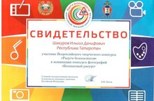 Ученик 10А класса Шакуров Ильгиз принял участие во Всероссийском творческом конкурсе "Радуга безопасности". Он награжден сертификатом участника в номинации "Безопасный ракурс". Молодец!