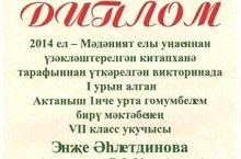 Энҗе Әһлетдинова 2014 ел - Мәдәният елы уңаеннан үзәкләштерелгән китапханә тарафыннан уздырылган викторинада I урын яулаган. Молодец, Энҗе! Котлыйбыз сине!