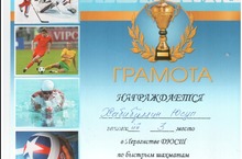 Хабибуллин Юсуп занял 3 место в Первенстве ДЮСШ по быстрым шахматам и награждён грамотой. Дальнейших успехов тебе, Юсуп!