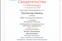 Наши учащиеся опубликовали в социальной сети работников образования nsportal.ru творческую работу "Китап. Китапханә. Китапханәче" (руководитель - Хисамова нурсия Муллануровна). Ознакомиться с публикацией вы можете по адресу http://nsportal.ru/node/924479/.