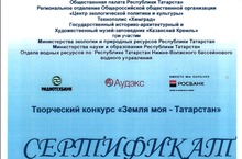 Учащиеся 1А класса Закирова Азалия, Атнагулова Алина, Валиев Айдар, Валиева Алена (классный руководитель - Даутова Алсу Камиловна), Валиева Мадина,Ибрагимов Искандер (куратор - Ахметзянова Айсылу Заниловна) награждены сертификатоми за участие в творческом конкурсе "Земля моя - Татарстан. Молодцы. ребята!