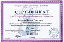 Поздравляем учителя начальных классов Галиеву Люцию Глюсовну с успешным участием в открытом Всероссийском конкурсе "СОТ в в творчестве учителя начальных классов- 2013".