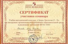 Поздравляем учителя биологии Валиеву Алсу Рифовну с успешным участием в семинаре "Учебно-методический комплекс "Сферы. Биология (5-9)" как инструмент организации информационно-образовательной среды и реализации требований ФГОС ООО.