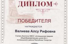 Поздравляем учителя биологии Валиеву Алсу Рифовну с победой во Всероссийском фестивале достижений "Моё портфолио". Желаем дальнейших творческих успехов!