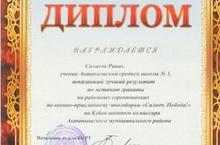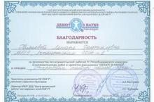 Поздравляем ученицу 6а класса Галиеву Илизу с успешным участием в IV Республиканском конкурсе исследовательских работ и проектов "ДЕБЮТ В НАУКЕ". Преподавателю Илизы - учителю татарского языка и литературы Галиевой Ленаре Рафаиловне была выражена благодарность от организоваторов конкурса , за руководство исследовательской работой IV Республиканского конкурса исследовательских работ и проеКтов школьников "ДЕБЮТ В НАУКЕ".