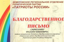 Поздравляем ученика 10 а класса Нуриева Айнура (учитель Сафиуллин Руслан Наилевич) с успешным участием в апрельскои этапе международного конкурса "Патриоты России".