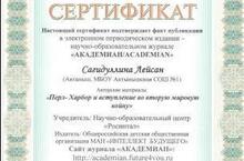 В электронном периодическом издании-научно образовательном журнале "АКАДЕМИЯ/AKADEMIAN" опубликована статья ученицы 11 а класса Сагидуллиной Ляйсан
