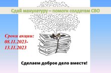 Мы объявляем сбор макулатуры в нашей школе в поддержку участников спецоперации. Будьте активны!
