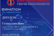 На Всероссийской олимпиаде "Финатлон" ученик 10 класса Галимуллин Нияз стал победителем! Учитель Мугтазирова Резеда Зинуровна. Поздравляем!