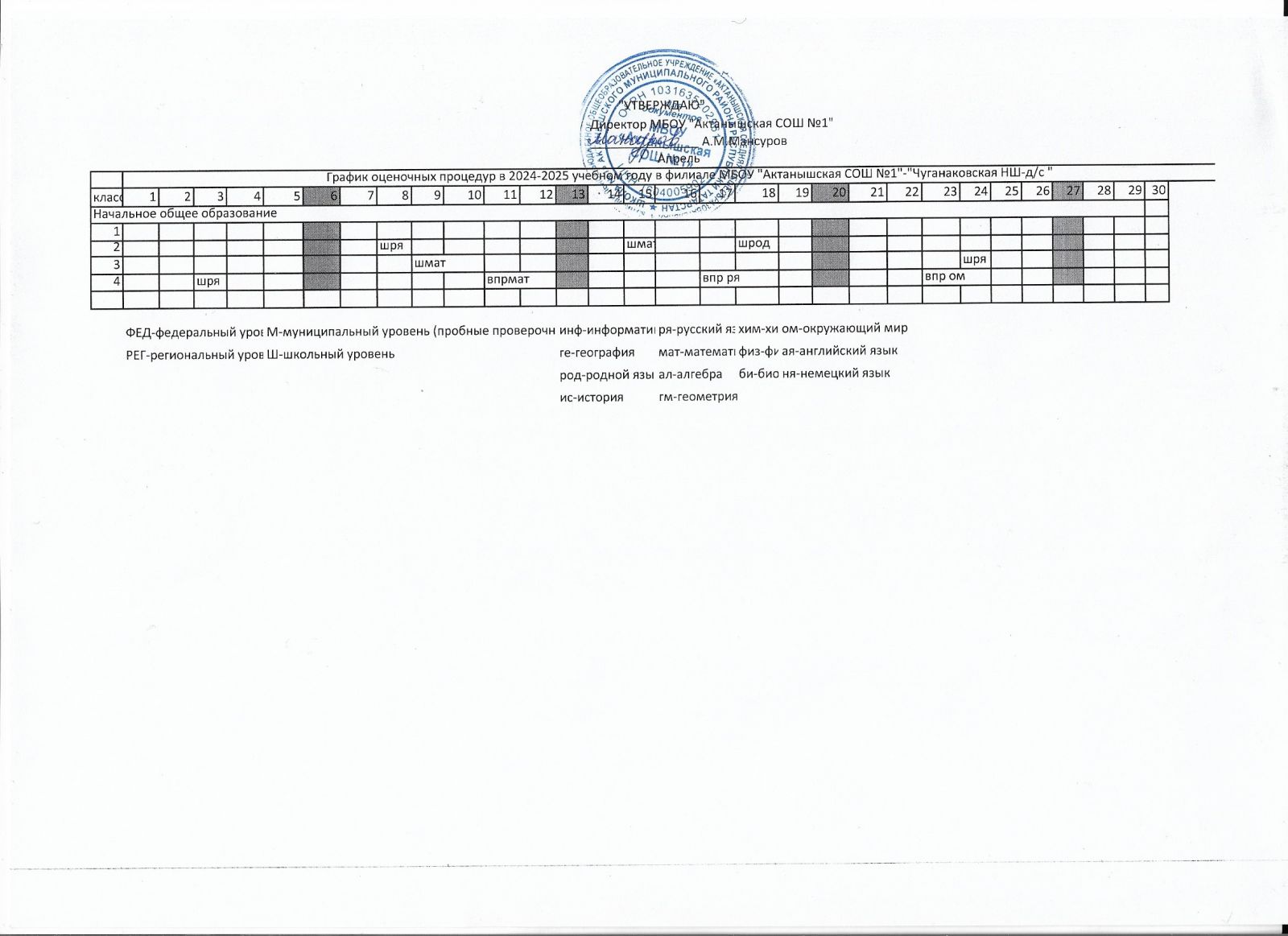 - График оценочных процедур за 4ч.2024-2025 уч.г.(апрель)