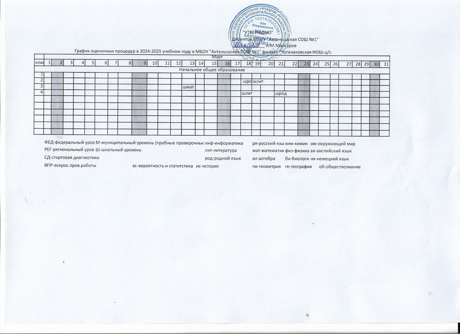 - График оценочных процедур за 3ч. 2024-2025 уч.г.(март)