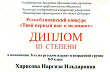 Твой первый шаг в медицину, Наргиза, на отлично! 13.06.2015