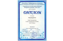 Санкт-Петербургның №366 нчы лицее уздырган "Зима 2012" математикадан интернет-олимпиадада 5А классы укучысы Нуриахметова Алина II нче дәрәҗә диплом белән бүләкләнде. Афәрин!