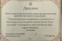 Мәктәбебез 2024 ел нәтиҗәләре буенча база мәктәпләре арасында югары күрсәткечләргә ирешеп җиңү яулаган өчен ДИПЛОМ белән бүләкләнде.