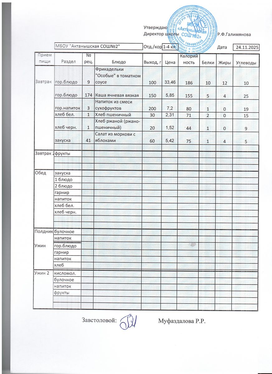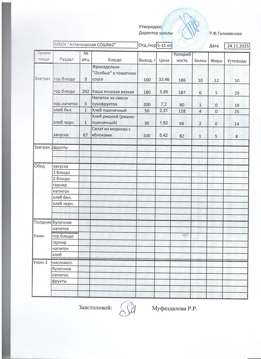 Ежедневные меню на 2024-2025 учебный год