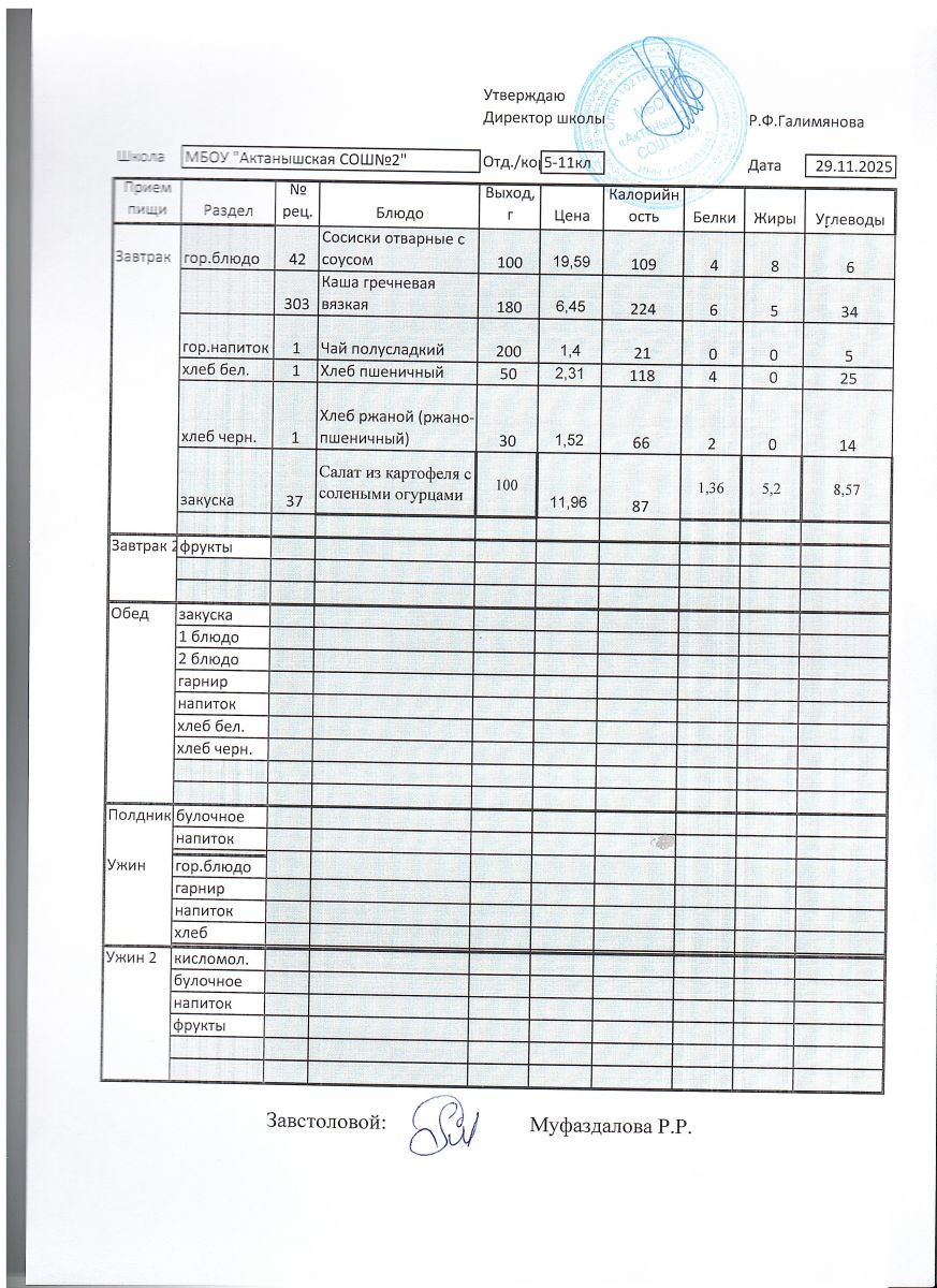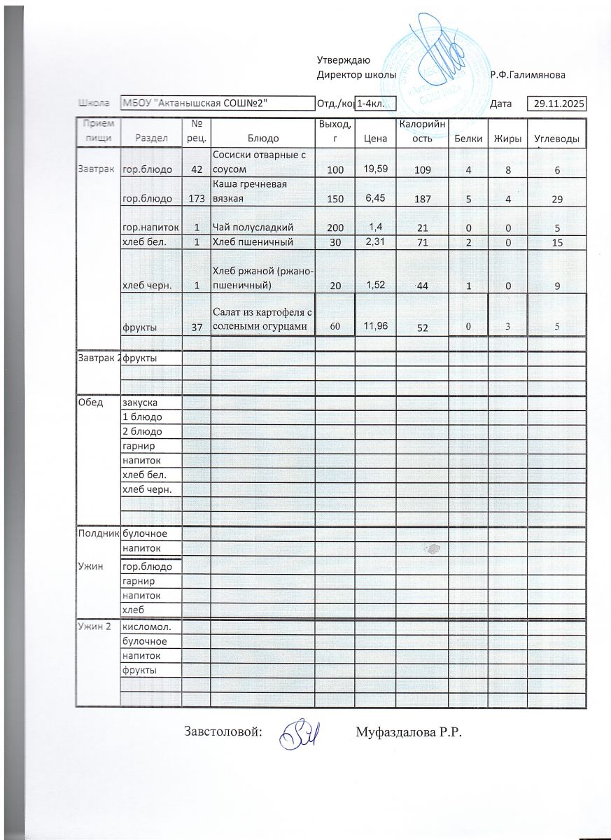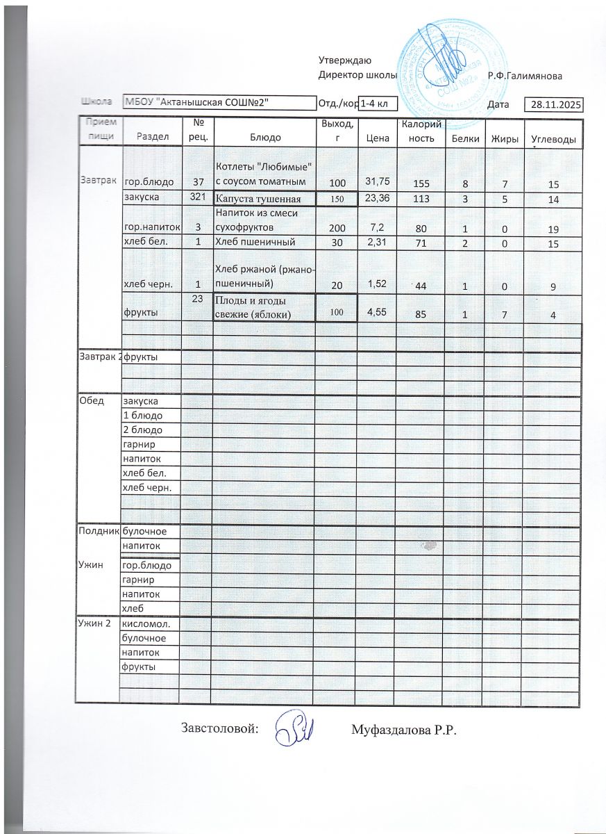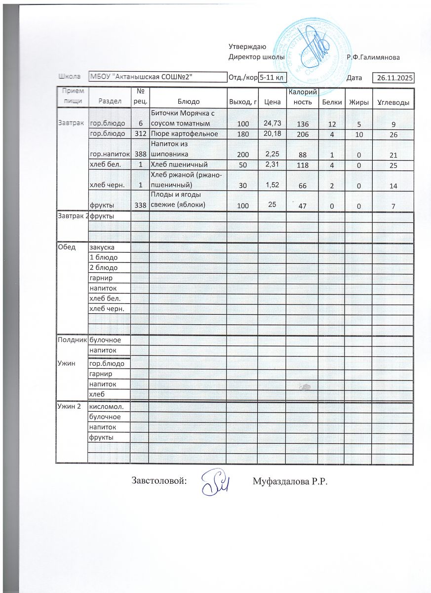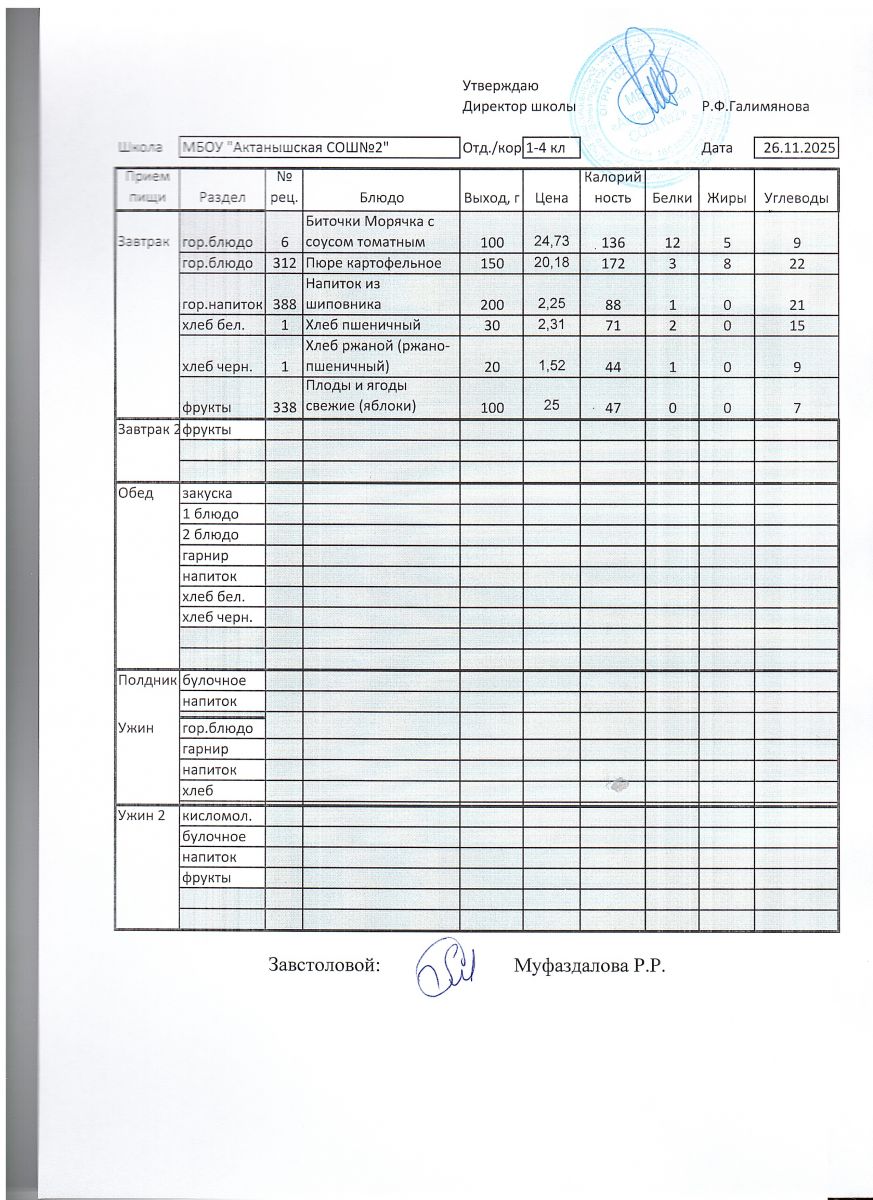 Ежедневные меню на 2025-2026 учебный год