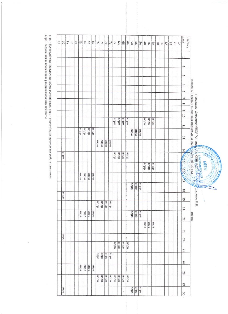 Примерный график оценочных процедур (апрель)