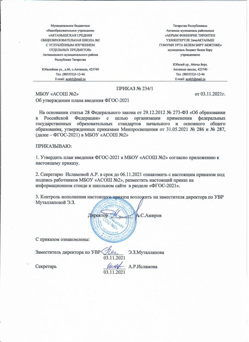 Приказ МО и Н РТ № под-1832/21 от 30.12.2021 "Об организации работы по введению обновленных ФГОС"