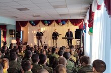Звучали патриотические стихи, песни. Эффектное выступление гитаристов вызвало бурные овации у зрительного зала.