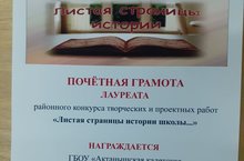 ГБОУ "Актанышская кадетская школа-интернат" награждено Почётной грамотой лауреата районного конкурса творческих и проектных работ "Листая страницы истории школы".