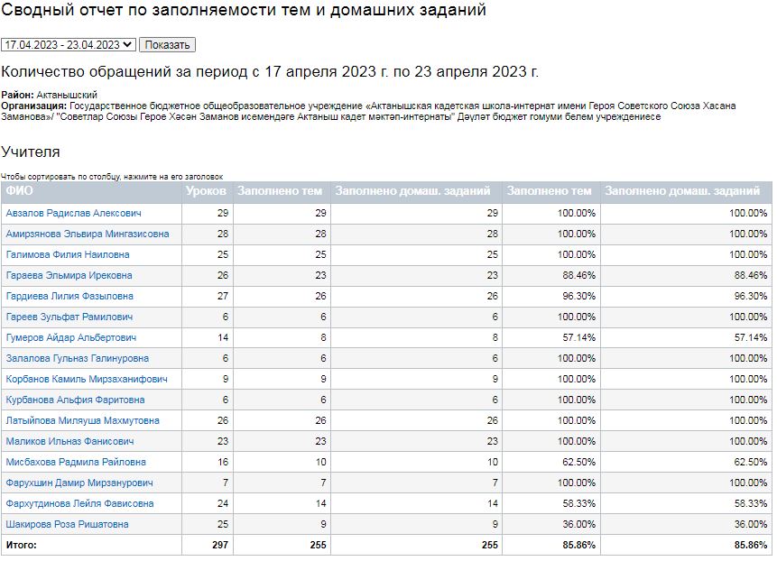 Сводный отчет по заполняемости тем и домашних заданий (17-23.04.2023)
