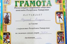 Кадет 9а класса нашей школы Назмиев Фанзиль занял ПЕРВОЕ место в первенстве РТ по лыжным гонкам на дистанции 5 км и награждён Грамотой. Поздравляем!