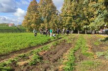 Сентябрьская погода порадовала нас тёплым солнечным деньком и мы учащиеся 8-9 классов, вооружившись перчатками, вёдрами и вилами, отправились на пришкольные участки, собирать урожай.