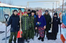 В рамках патриотического направления «Волонтёры победы» 3 февраля кадеты 6а класса вместе с воспитателем побывали в гостях у мамы мобилизованного Гикрамина Айдара Халисэ апа. Кадеты расчистили участок дома от снега, паласы вытрясли.