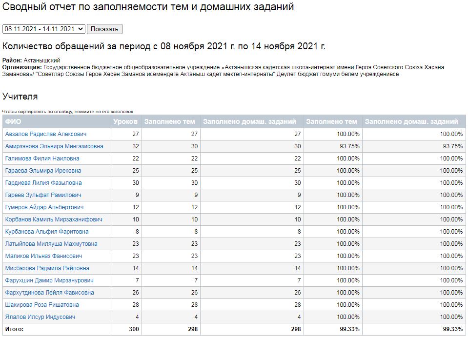 Сводный отчет по заполняемости тем и домашних заданий (08-13.11.2021)