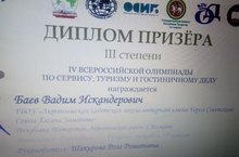 Ученик 7б класса нашей школы Баев Вадим награждён Дипломом призёра III степени IV Всероссийской олимпиады по сервису, туризму и гостиничному делу, учитель географии Шакирова Р.Р. награждена Благодарственным письмом, ученик 8а класса Шакиров Азамат - сертификат участника, наша школа - Благодарственным письмом. Поздравляем!