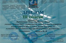 Ученики 7б класса: Фархутдинов Тимур, Нуртдинов Дамир(руководитель Маликов И.Ф.) награждены Дипломом III степени Республиканского турнира "Компьютерная грамотность".