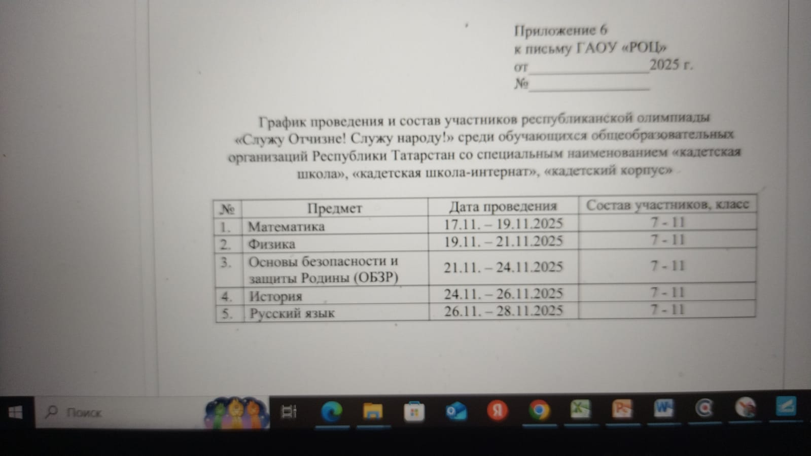 Республиканская олимпиада "Служу Отчизне! Служу Народу!" среди обучающихся кадетских школ и кадетских школ-интернатов РТ 11.11.2025
