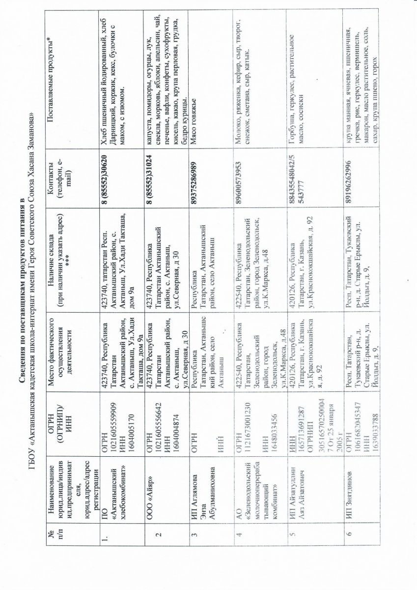 Перечень юридических лиц ми индивидуальных предпринимателей, поставляющих(реализующих) пищевые продукты и продовольственное сырье в общеобразовательную организацию