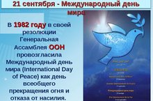 21 сентября 2017 года - Международный день мира как день всеобщего прекращения огня и отказа от насилия.