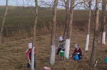 Иске Кормаш укучылары, укытучылар, техник эшчеләр полосадагы агачны агартырга чыктылар.