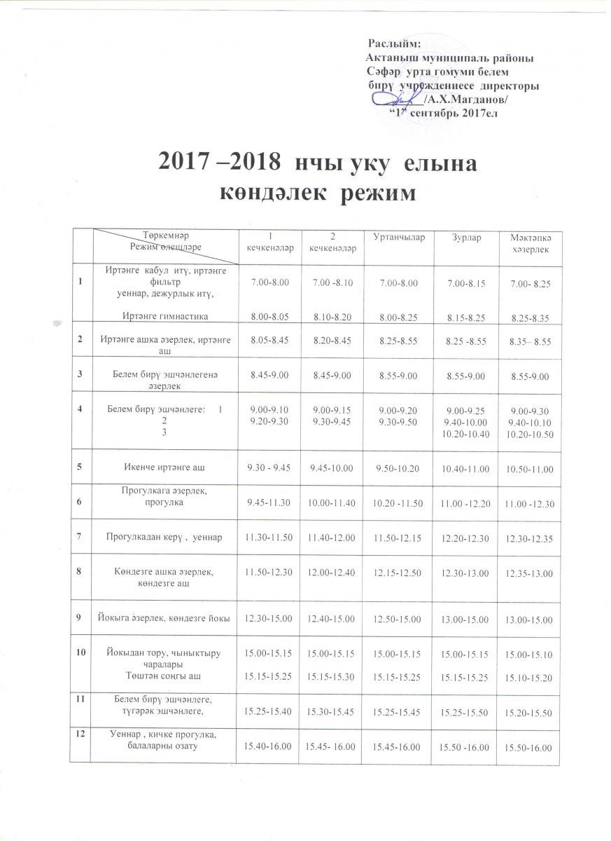 Режим дня на 2017-2018 год