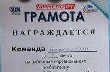 Наша команда на районных соревнованиях по биатлону, посвященный 80 годовщине ВОВ и Дню Защитника Отечества, заняла почетное 3 место.