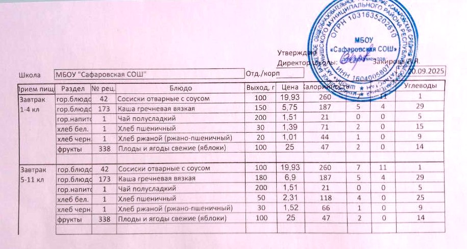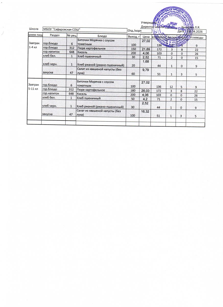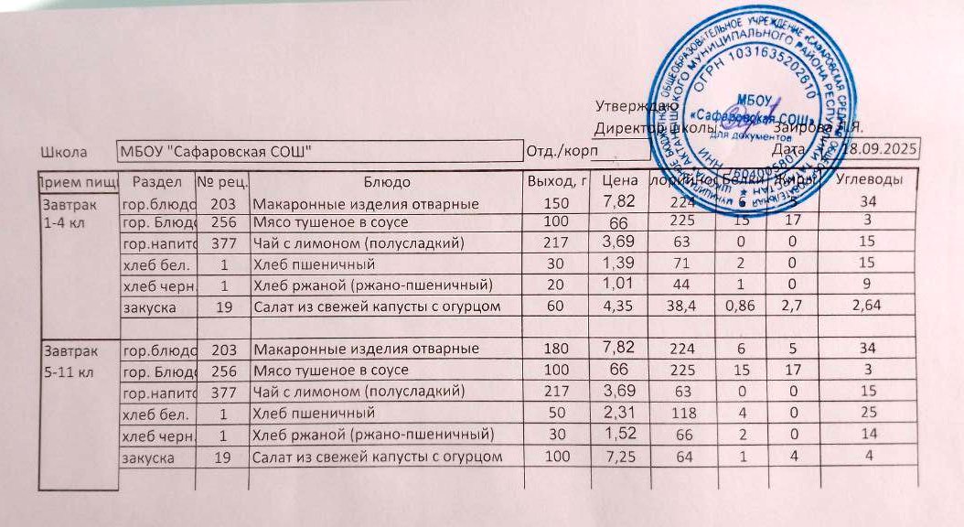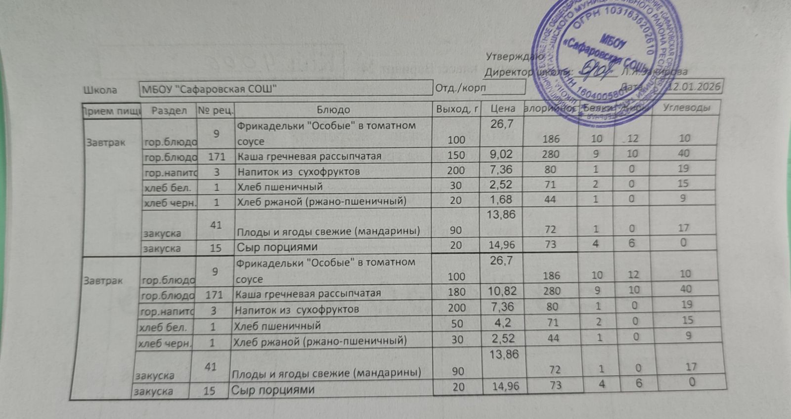 | Короткое название: | МБОУ "Сафаровская СОШ" |