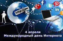 4 апреля - Международный день Интернета и неофициальный праздник веб-мастера. Интернет выполняет такое большое количество функций, что сейчас мы не можем жить без него. Поэтому вполне логичным является провозглашение Международного дня глобальной сети "Интернет", который празднуется ежегодно 4 апреля.