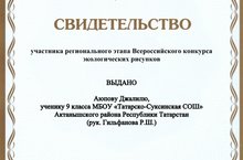 9 сыйныф укучысы Гыйльфанов Динар 2021-2022 уку елында мәктәп укучылары арасында иң актив укучы булып танылды һәм Актаныш районы башлыгының мактау грамотасы белән бүләкләнде. Динарга киләчәктә дә уңышлар телибез!