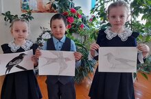 "Кошлар, безнең дускайлар" темасына нигезләнеп, 1 сыйныф укучылары рәсемнәр ясады.