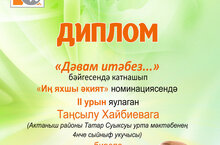 “Татмедиа” Ачык акционерлык Җәмгыяте “Көмеш кыңгырау” республика балалар һәм яшүсмерләр газетасы үткәргән “Дәвам итәбез...” бәйгесендә катнашып, “Иң яхшы әкият” номинациясендә 4 нче сыйныф укучысы Хәйбиева Таңсылу 2 урын алды. Аны уңышы белән котлыйбыз, киләчәктә дә уңышлар телибез.