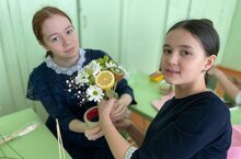 Наверное, в мире нет человека, который не мог бы устоять перед красивым ароматным букетом цветов, который поднимает настроение. Такие букеты прекрасно вписываются в интерьер, наполняя комнату прекрасными ароматами. Но бывают и съедобные букеты. Букеты из таких продуктовых наборов стали популярны в последнее время. Они приклеиваются к шпажкам. Такой же букет на 8 марта мамам на уроке технологии сделали и 6-классницы нашей школы.