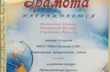 Математическая карусель 2019 29.11.2019 Поздравляем призёров районного конкурса "Математическая карусель-2019": - Гардиева Айсылу. (5 кл), Мингазов Илсаф. (5кл), Мингазов Динар.(6 кл), руководитель Аюпова Г.А.;